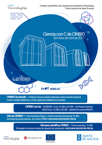 Con motivo da Semana da Ciencia (1 ao 14 de novembro de 2021) o CINBIO celebra as súas portas abertas para achegar o traballo diario do noso persoal investigador á sociedade, co obxectivo de que a ciencia sexa máis accesible a todas as persoas, incluídas as máis alleas a ela.
