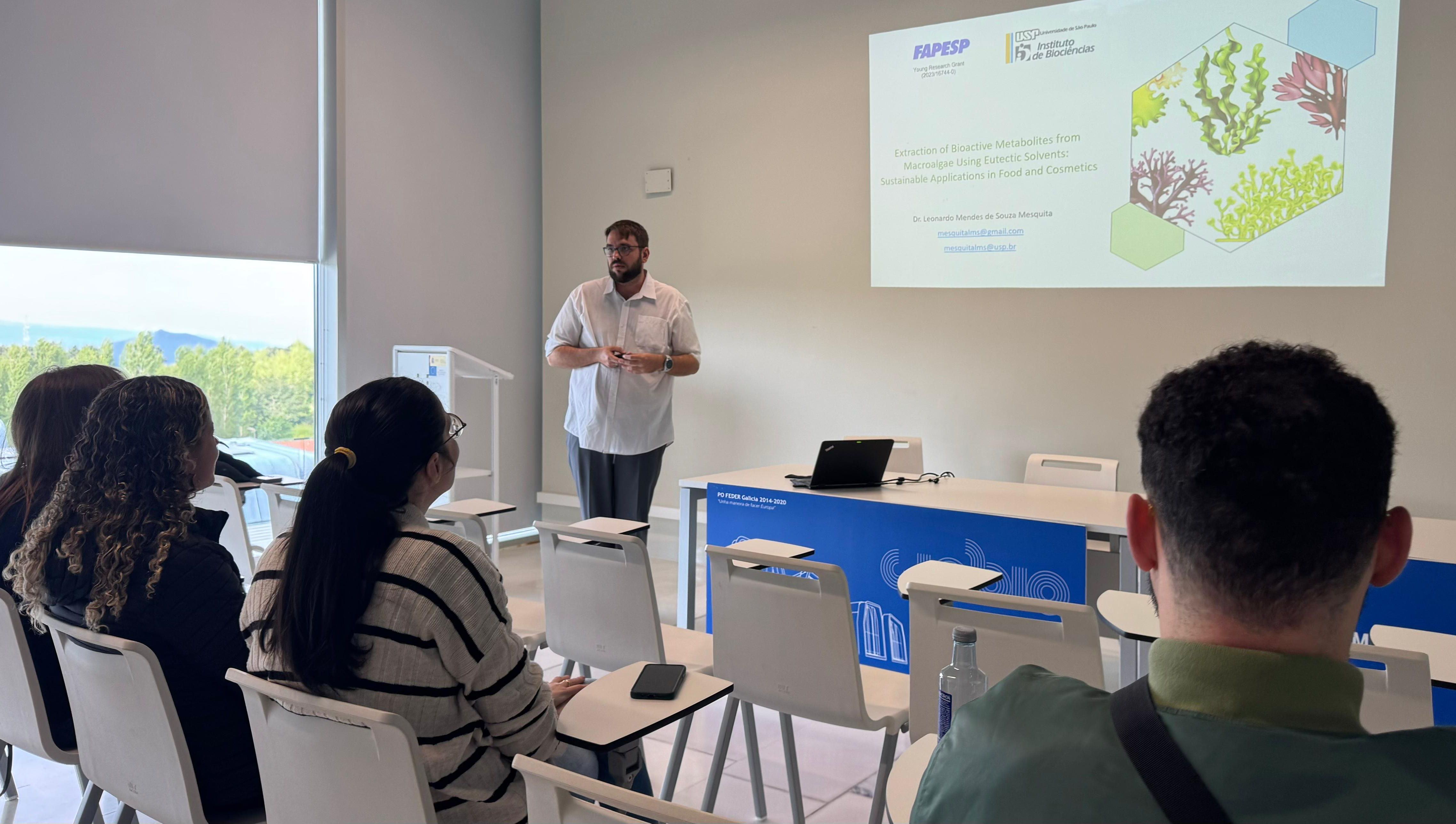 O xoves 8 de maio de 2025, Dr. Leonardo de Souza Mesquita (Principal Investigator of the project “Sustainable Innovations: The Biorefinery Revolution via Macroalgae Valorization Using Renewable Solvents towards a Green/Blue Economy” at University of São Paulo) ofrecerá o seminario “Sustainable Extraction of Bioactive Metabolites Using Eutectic Solvents: Applications for Health " dentro do ciclo CINBIO Seminar Programme.