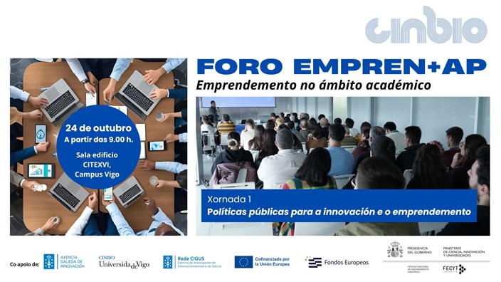 O venres 24 de outubro de 2025 celebraremos o “Foro de políticas públicas para a innovación e o emprendemento”, organizado pola Unidade de Transferencia e Innovación do CINBIO. Terá lugar na Sala do edificio CITEXVI, no campus universtario de Vigo.