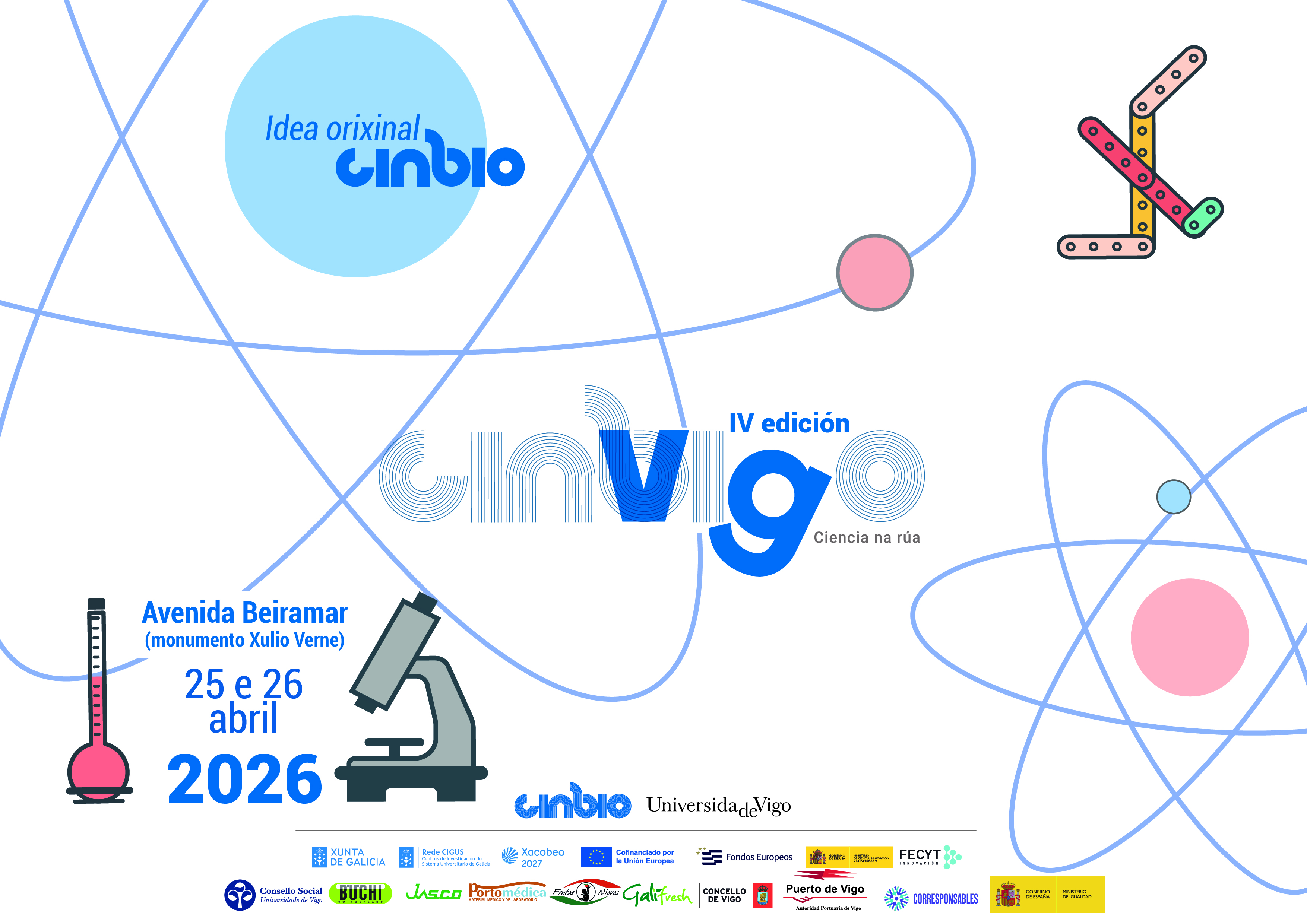 Tras o éxito acadado nas súas tres primeiras edicións, o festival científico CinVigo. Ciencia na rúa regresa este 2026 cunha proposta renovada e máis ambiciosa. Organizado polo CINBIO, centro de investigación da Universidade de Vigo pertencente á Rede CIGUS, e coa colaboración da Fundación Española para la Ciencia y la Tecnología - Ministerio de Ciencia, Innovación y Universidades, o evento celebrarase durante a fin de semana do 25 e 26 de abril.
