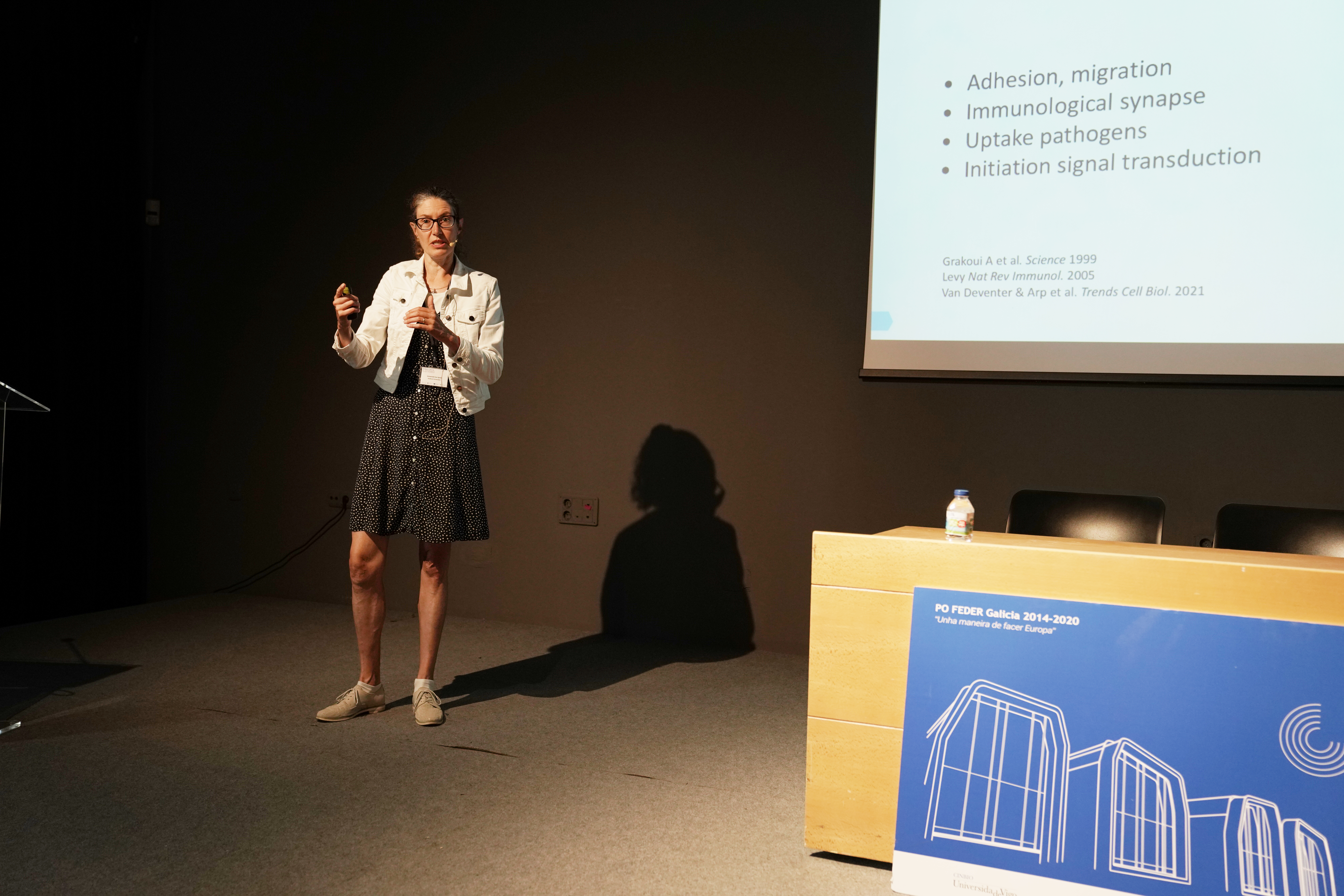 A investigadora Annemiek van Spriel da Universidade Radboud (Países Baixos), foi a encargada de ofrecer o primeiro relatorio da reunión, logo da presentación da catedrática de Inmunoloxía da UVigo África González, titulado Tetraspanins: Molecular Organisers of the Immune Cell Surface. Pola súa banda, Clement Sánchez, director do Laboratorio de Química da materia condensada na Universidade Pierre y Marie Curie (Sorbonne Université-UPMC), será o encargado de abrir a sesión do venres coa ponencia Integrative chemistry of functional nanostructured and hierarchically structured inorganic and hybrid materials.