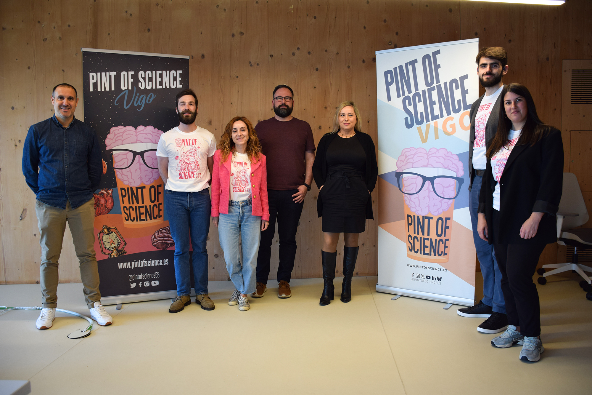 Ara Núñez, coordinadora do equipo local en Vigo, explicou na presentación que “achegar a ciencia á sociedade non é só unha opción, é unha necesidade. Cremos que o coñecemento non debe quedar nos laboratorios, senón que debe saír, contarse e compartirse. A miúdo cremos que a ciencia é difícil de entender, pero quizais só necesitamos que nola expliquen doutra forma”. Neste sentido, remarcou que Pint of Science presente “democratizar o coñecemento científico, promover unha cidadanía crítica e informada e, sobre todo, contribuír á xeración de vocacións científicas”.