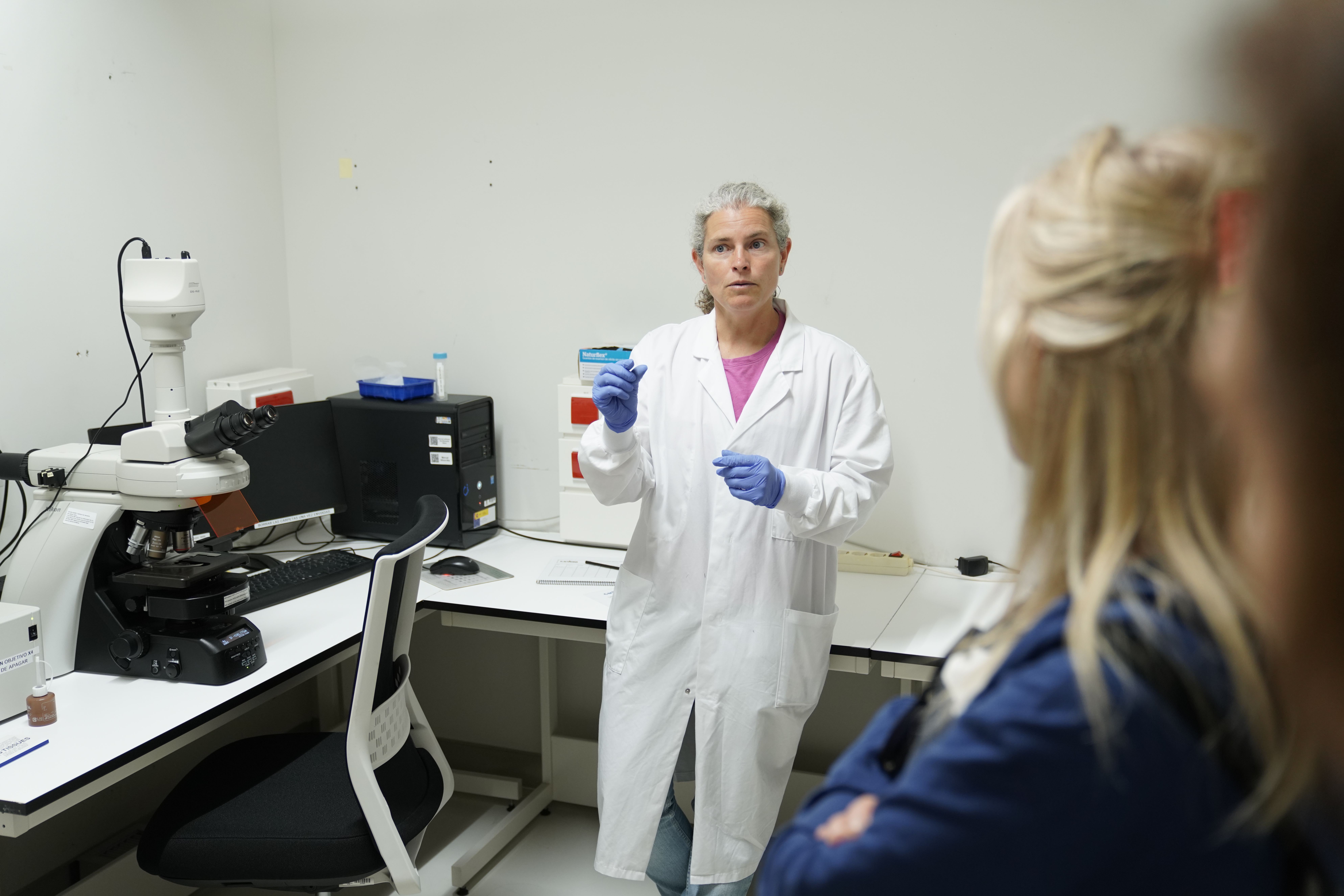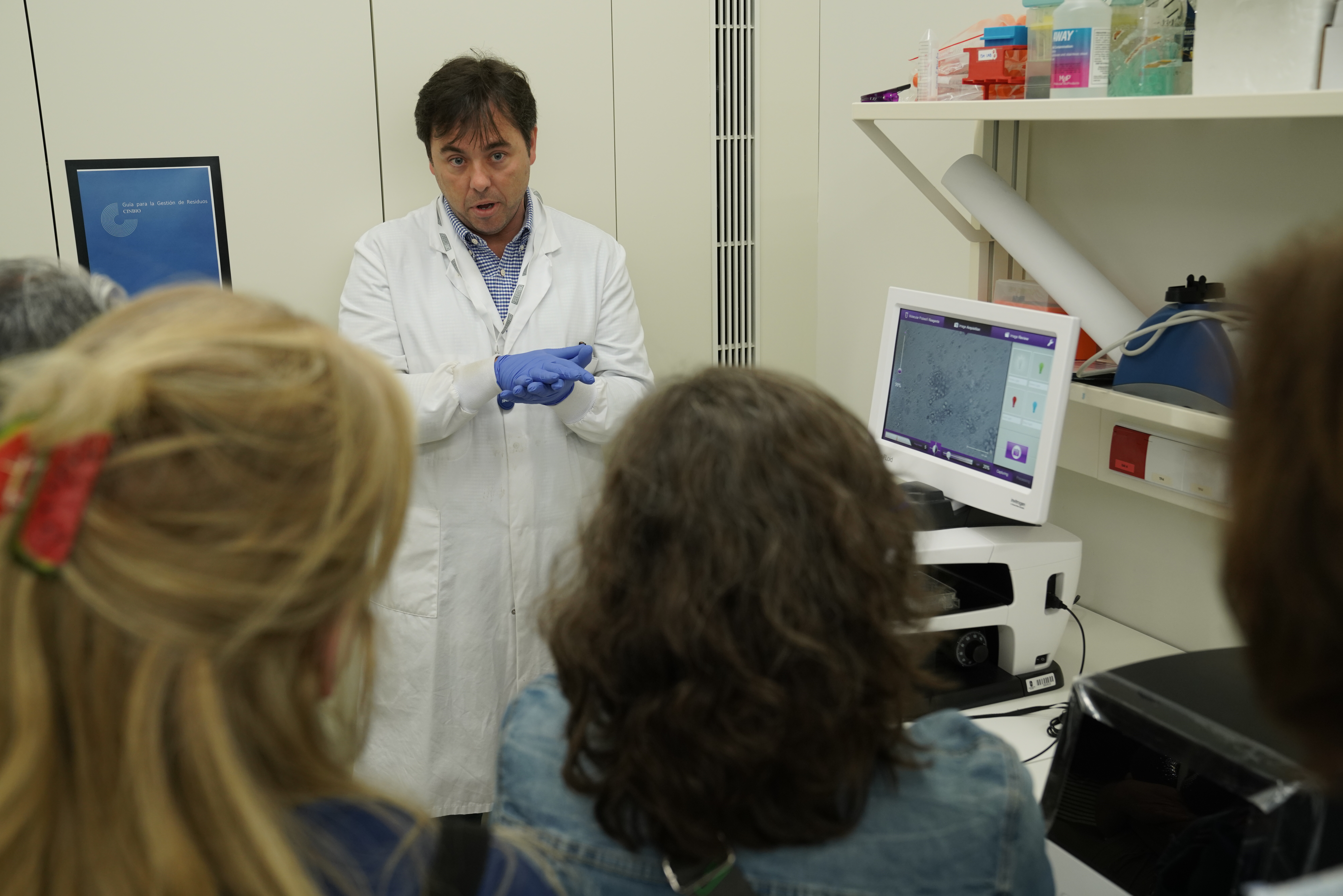 Na súa estadía coñeceron de preto o traballo que realizan a investigadora Carmen Hervés e os investigadores Carlos Renero, Andrés Serrano e Adrián Hervés no laboratorio de Nanomateriais Biomiméticos. A seguintes paradas foron no laboratorio de Inmunoloxía, onde se achegaron ao traballo deste grupo da man de Silvia Lorenzo e Cristian Sánchez; e tamén vistaron o laboratorio de Histoloxía, acompañadas de Andrea Fernández e Olaya Gómez. Ademáis, puideron coñecer o Servizo de Bioexperimentación da man da súa responsable, Marina Peña.