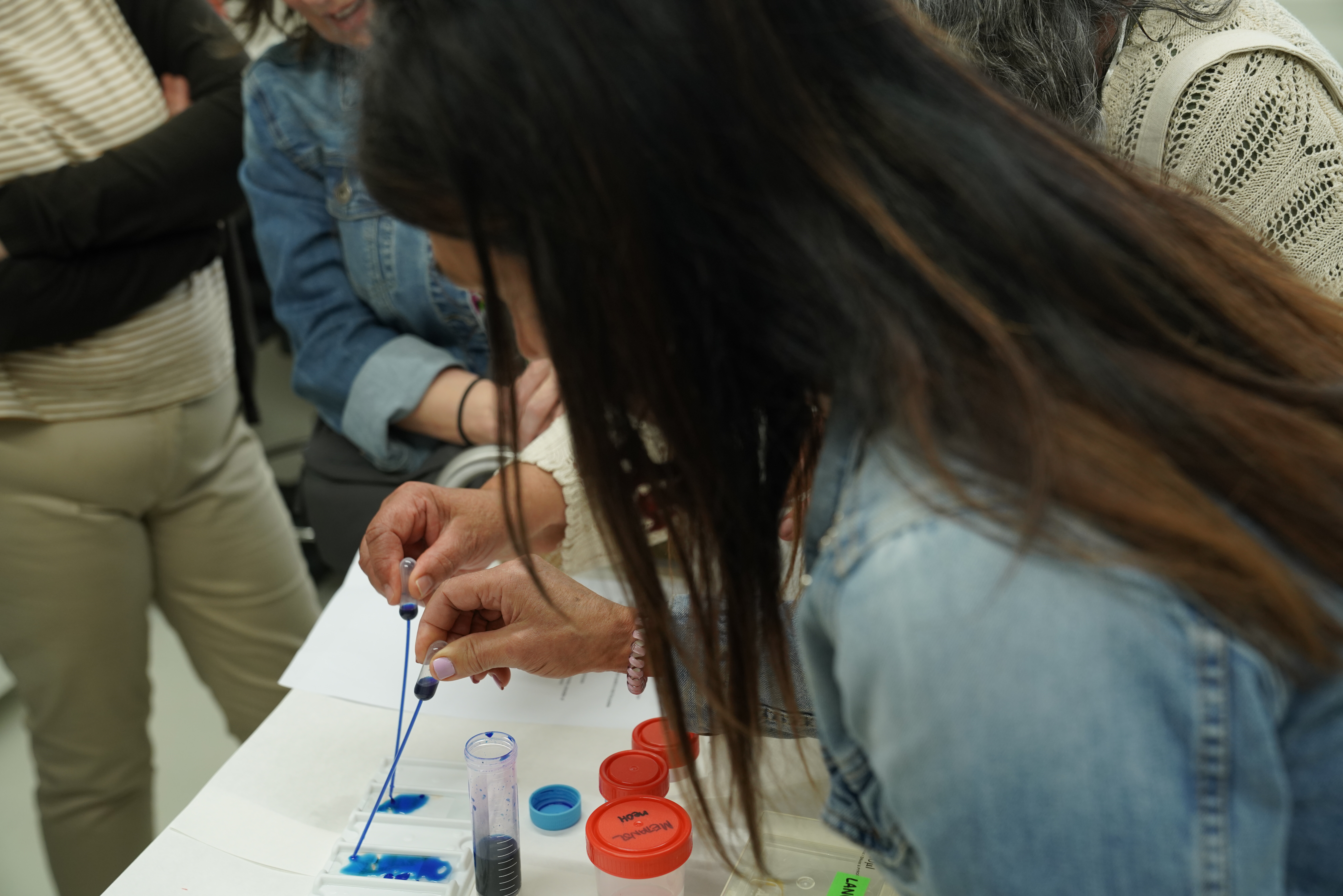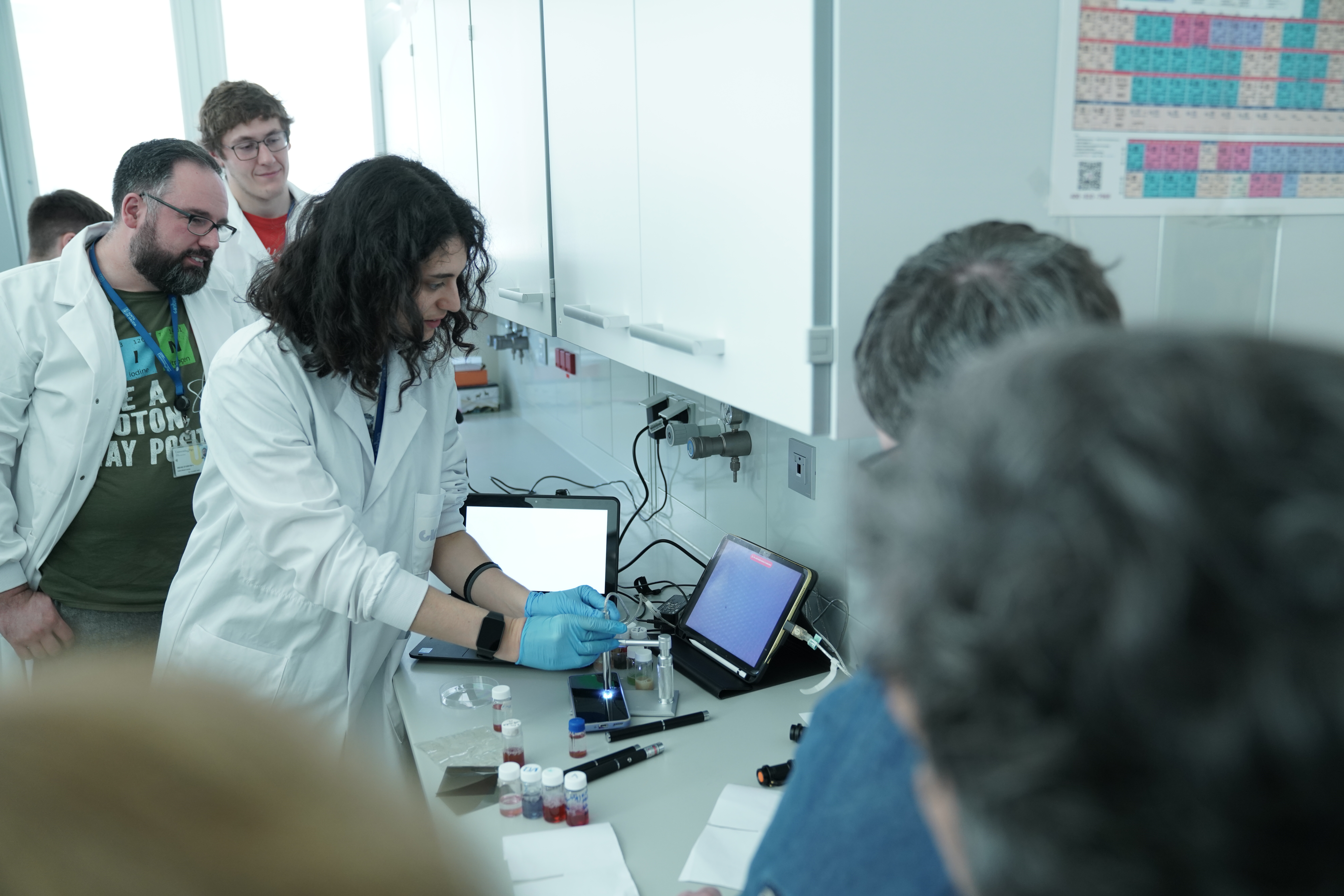 Acompañados pola súa profesora Mercedes Peleteiro, responsable do servizo de Citometría de Fluxo do CINBIO, o entusiasta grupo tivo a oportunidade de participar en tres obradoiros diferentes ao longo das dúas horas que durou a visita.